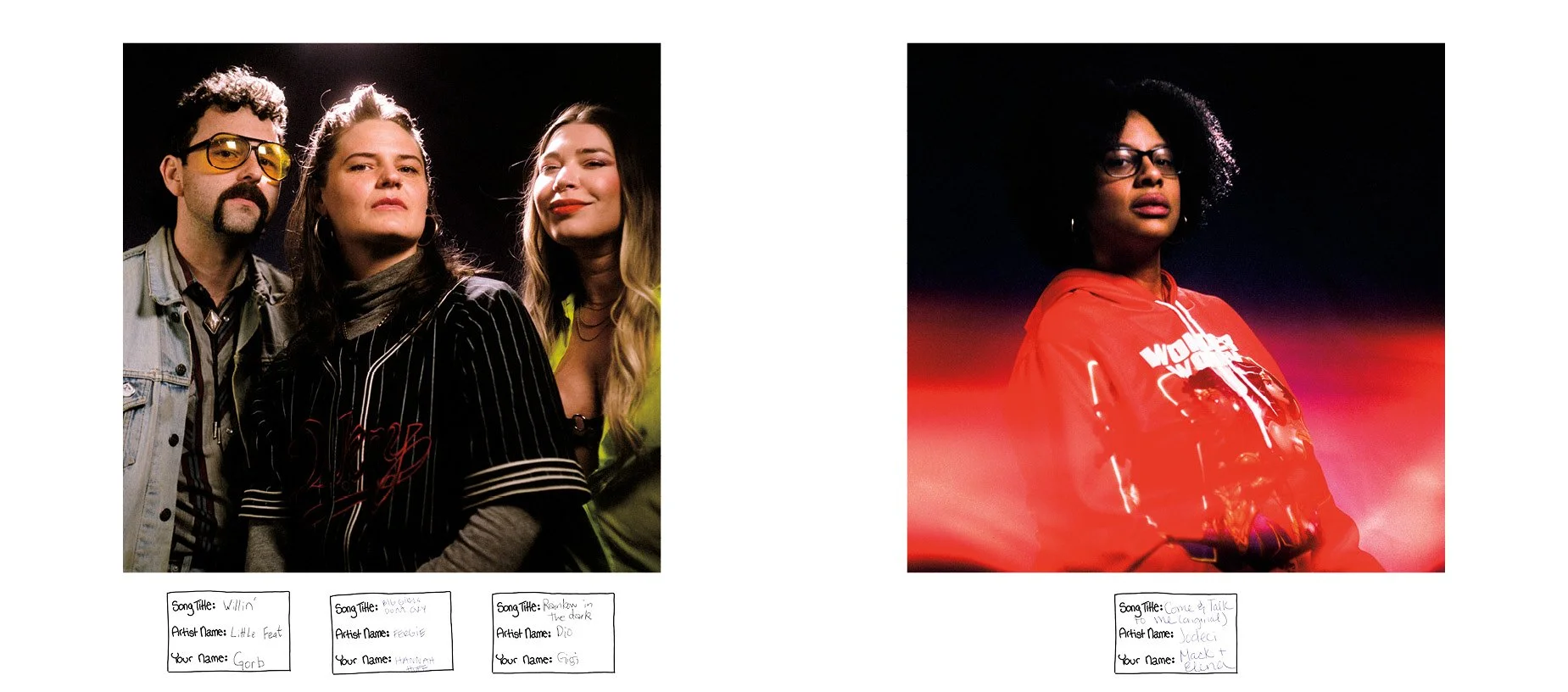 I shot these portraits over one night in spring 2023 in a makeshift outdoor studio set up across the street from Lottie’s. I handed out disposable cameras for the bar patrons to pass around, the results of which make up the other part of the book. In place of typed captions for each photo are scans of the paper slips on which the singers write their name and chosen track.